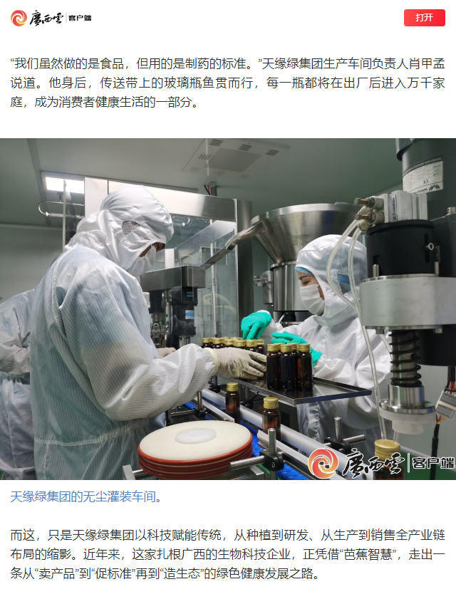 廣西云記者筆下那株“淬煉”重生的芭蕉根莖,正是我們產業(yè)宏圖的微觀縮影。車間負責人肖甲孟那句“我們雖然做的是食品,但用的是制藥的標準”,并非簡單的生產描述,它是天緣綠融入血脈的品質哲學和不容妥協(xié)的價值底線。這意味著,從第一道工序起,我們選擇的就是對消費者健康最極致的負責。